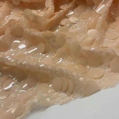 Big Fleshcolor Sequins Tecido bordado Tecido 100% Poliéster Tecido Para Mulheres Saias de Festa
