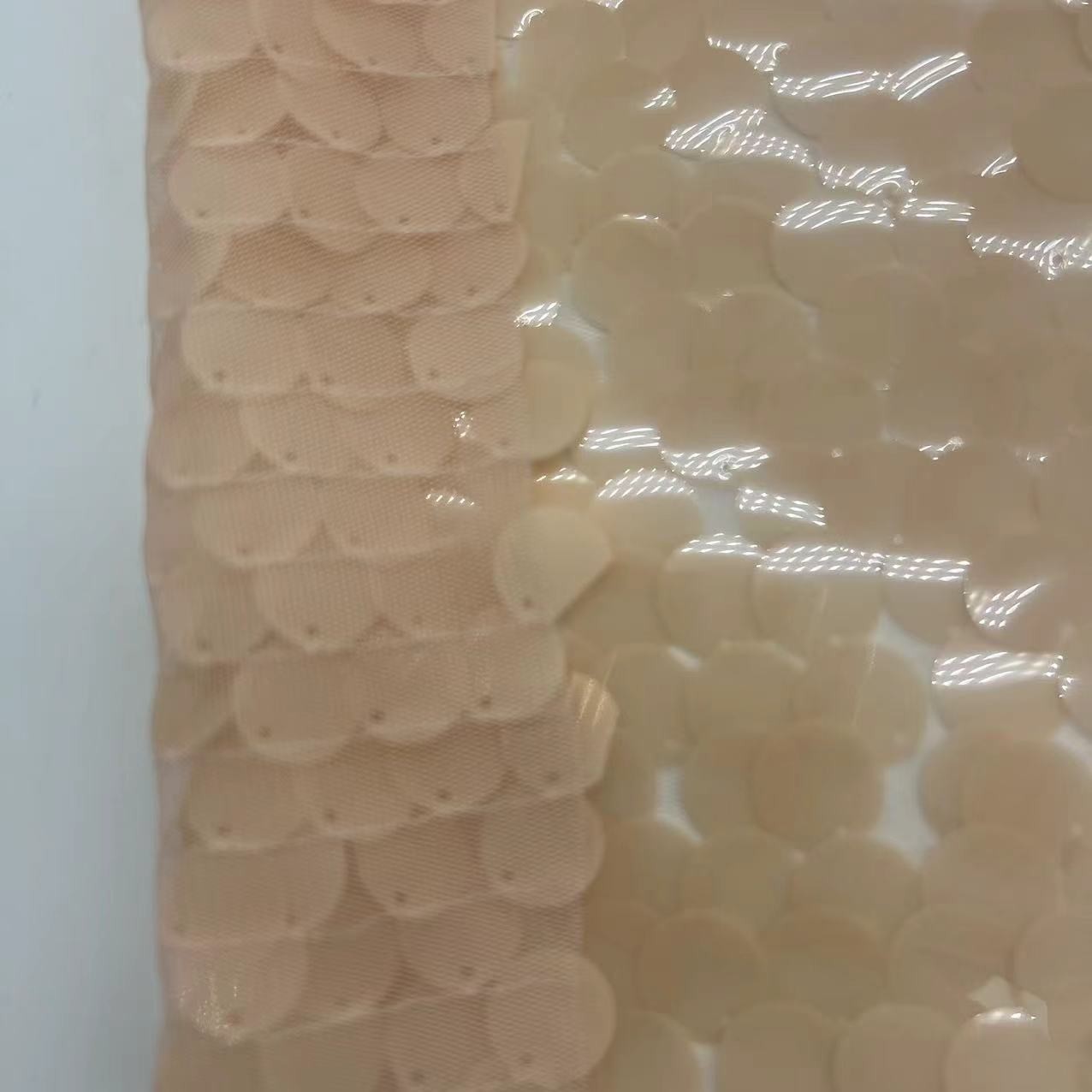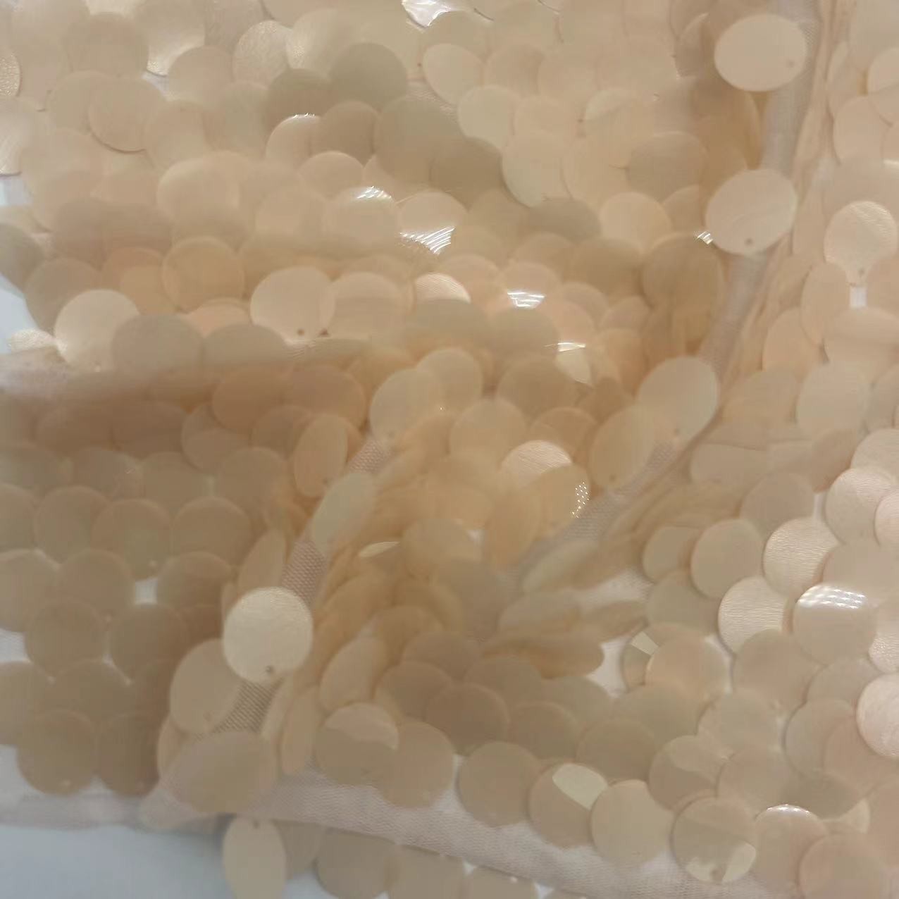 100% Poliéster Big Beige Sequins Tecido de bordado Vários tamanhos