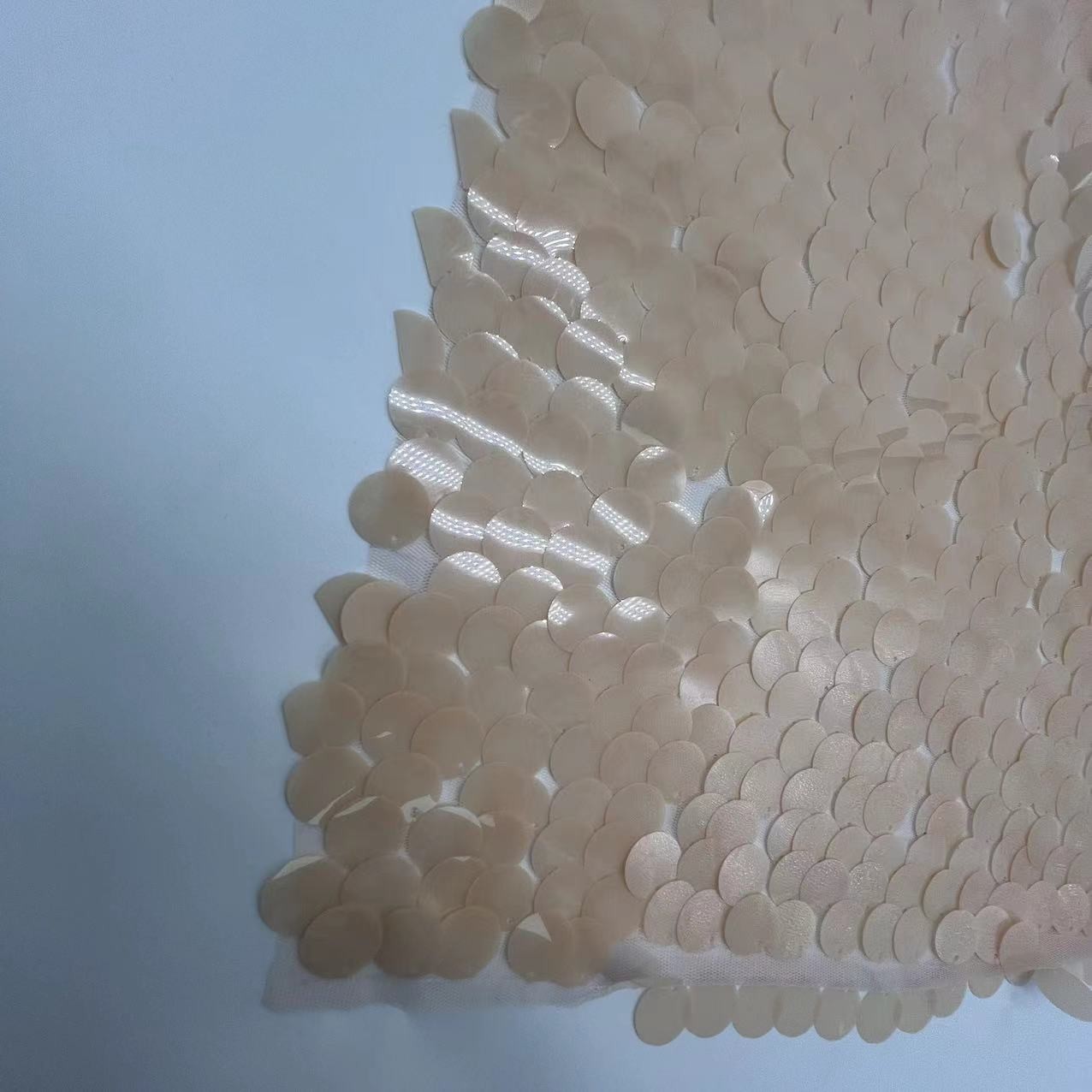 Destacar | Tela de bordados de sequins de vários tamanhos,Tecido de bordado de sequins de grande beige,Tecido de bordado de palhinhas de poliéster 100% |